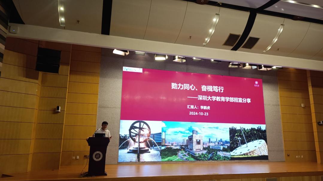 On October 23, 2024, Shenzhen University successfully convened the 2024 Undergraduate Admissions Summary and Recognition Meeting and the 2025 Undergraduate Admissions Promotion Mobilization Conference. The Faculty of Education received numerous awards, including “First Prize for Outstanding Admissions Promotion Work Group”, “First Prize for Outstanding Out-of-Province Admissions Promotion Responsibility Group”, “Outstanding Contribution Award”, and “Excellent Liaison Officer Award”. Following the meeting, Associate Dean Li Penghu shared valuable experiences with all admissions promotion staff.
