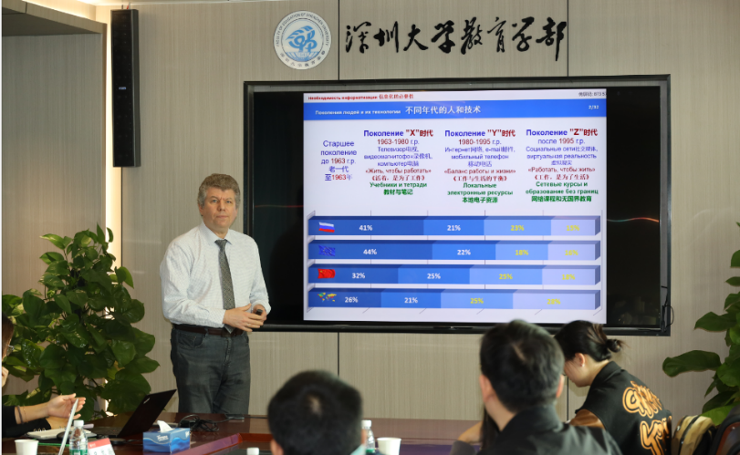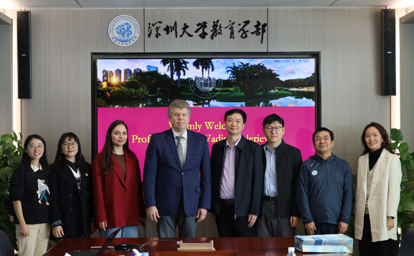 On the morning of December 13, 2024, a delegation from the Educational-scientific Institute of Comparative Educational Policy of Peoples’ Friendship University of Russia, including Professor Vadim Grinshkun (Гриншкун Вадим Валерьевич)from the Department of Continuing Education and Information Technology, Ольмезова София Эдуардовна, Assistant to the Dean, and Wu Rongwei, an expert from the Special Education and Inclusive Education Support Center, visited the Faculty of Education at Shenzhen University for an academic exchange. The meeting was attended by Li Jun, Executive Director, Li Penghu, Deputy Director, Wang Bi, Director of the Party and Administration Office, and Li Wenguang, Director of the Department of Education Information Technology of the Faculty of Education. The session was hosted by Deputy Director Li Penghu.
