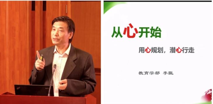 迎新大会的最后,由李臣代表学部向新生致辞。李臣首先对教育学部成立以来的首届学子表示最衷心最热烈的欢迎。随后,他引用了稻盛和夫的人生制胜秘诀“一切始于心”,他说大家如果想要安顿在深大的校园,依然需要始于心、安于心,因为“人的心灵像庭院,既可理智地耕耘,也可放任它荒芜,不管是耕耘还是荒芜,庭院都不会空白。”回首历届师兄师姐当中,不乏荔园卓越之星、荔园优学,他们无不是跟从内心,强大内心,用心做事,努力成事,做成好事,最终长成本事,成为有本领、有理想、有担当的时代新人。他认为能否用心设计自我,是造成大学生活的巨大差距的标尺,希望大家能从心开始,用心规划,潜心行走,相信“你们的明天才是教育学部的骄傲,因为你们才是教育的明天,你们才是祖国的未来”。