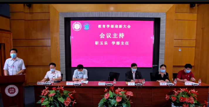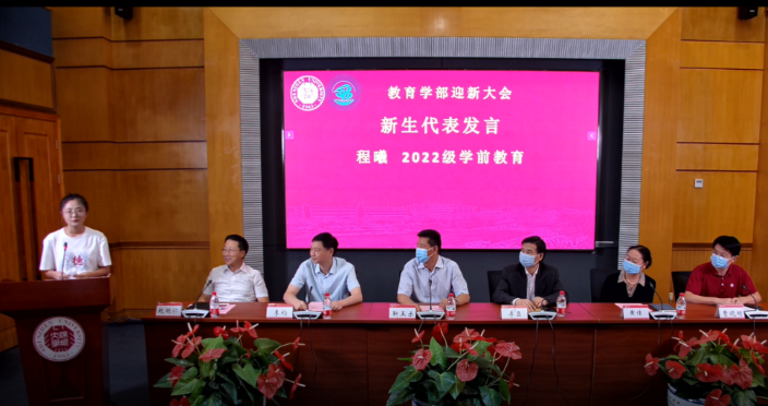 2022年9月14日晚,教育学部成功举办了2022年迎新大会。受疫情影响,本次活动严格按照学校防疫要求开展,采用线下(国际会议厅D厅)和线上(教育学部智慧教室平台云直播)相结合的形式举办。教育学部主任靳玉乐、党委书记李臣、执行主任李均、党委副书记黄佳、副主任赵明仁、副主任曹晓明、各院系各职能部门负责人、各党支部书记以及2022级新生代表到现场出席大会,其余师生线上收看直播。大会由靳玉乐主持。