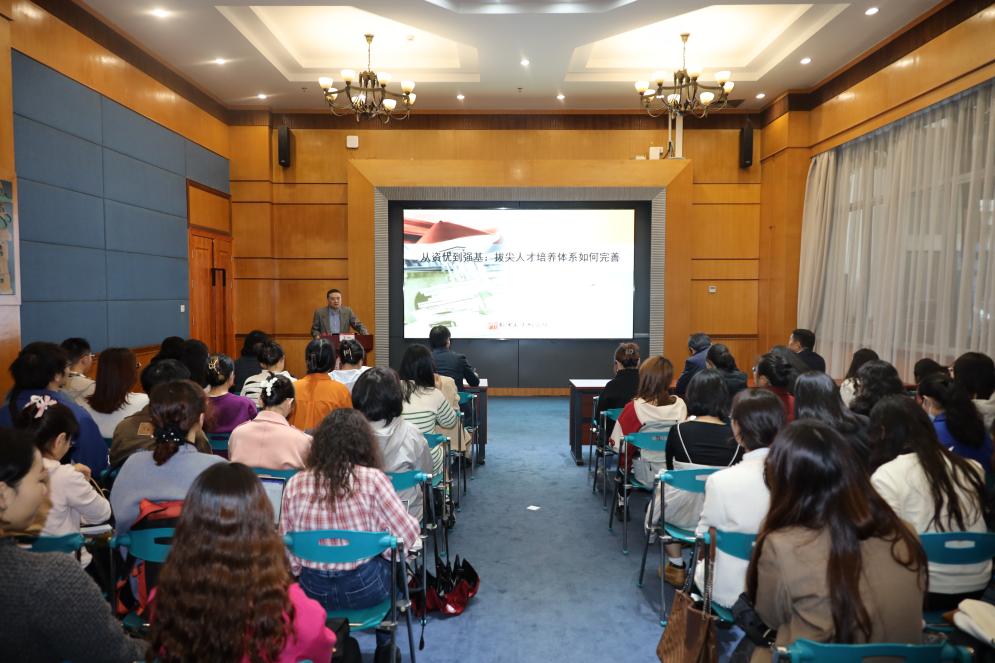 讲座伊始,丁钢教授指出,从整个拔尖人才培养体系来看,需要充分认识资优儿童的早期发现与培育的必要性。丁钢教授从资优政策与推进、基础教育阶段拔尖后备人才、高等教育中的拔尖人才计划三个方面论述完善拔尖人才培养体系的措施。他强调拔尖人才的培养需要兼顾基础教育和高等教育之间的衔接性,接着,他以高等教育强基计划为例,指出强基计划为培养符合国家战略需要的拔尖人才做出了极大的贡献。
