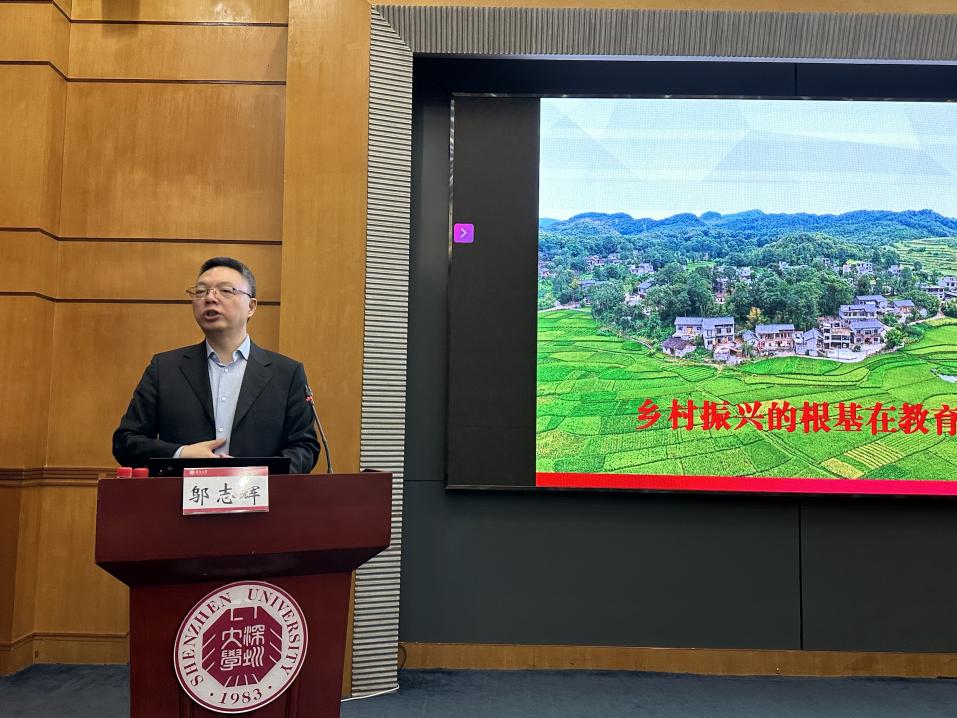 2023年4月8日上午,深圳大学40周年校庆教育学部知名学者系列讲座活动在国际会议厅D厅举行,邬志辉教授带来题为《乡村教育振兴与教师教育的任务》的讲座。本次讲座由教育学部副主任赵明仁教授主持,教育学部相关师生参与讲座。
