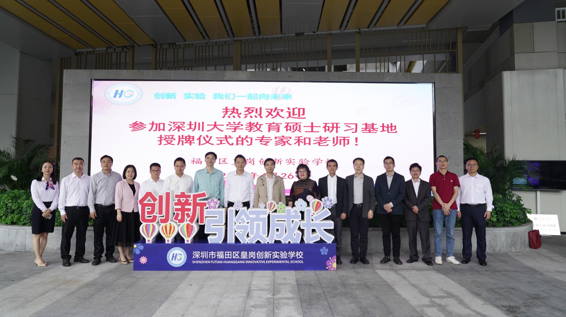 2023年4月26日,深圳大学教育硕士研习基地签约及授牌仪式在福田区皇岗创新实验学校举行。深圳大学教育学部党委书记李臣、教育学部执行主任李均、教育学部副主任赵明仁、小学教育专业负责人孔祥渊、福田区皇岗创新实验学校党委书记伍建中、深圳大学附属教育集团外国语小学校长姚晓英、龙岗区龙岗中心学校校长李剑锋和基地实践指导教师出席仪式。仪式由皇岗创新实验学校教科室主任黎奇光主持。