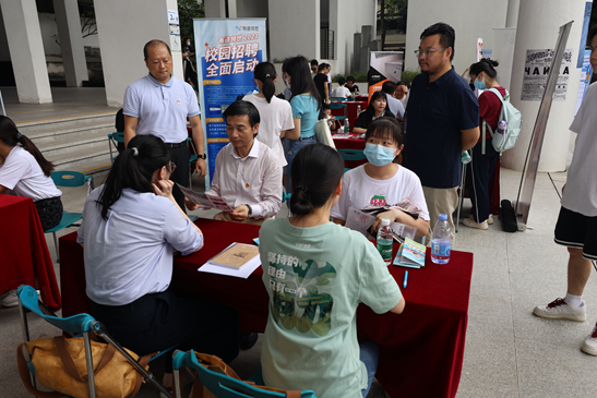 招聘会现场气氛热烈,来往咨询、参与招聘的人员比肩接踵。毕业生同学主动了解招聘需求,积极与意向单位沟通交流,充分展现自我,抓住机会投递简历。各人事负责人也精心准备详尽的宣传资料,热心介绍相关职位信息,悉心解答同学们的各种疑惑。不少非毕业年级的学生也来到招聘会现场,提前关注就业动向,熟悉就业市场,规划未来的发展方向。