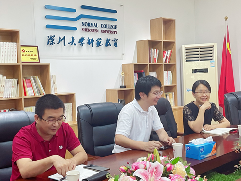 | 为推动深圳大学教育学部学习科学创新实验室与科研平台的建设,5月28日,教育学部邀请了教育部教育信息化战略研究基地副主任曾海军及中国教育报黄璐璐一行进行座谈交流。本次会议旨在探讨人文社科的重点实验室建设的方向与策略,并就教育学部未来加强学习科学领域研究,完善和加强学习科学创新实验室建设问题进行研讨。 教育学部副主任曹晓明、教育信息技术系系主任李文光、副系主任李冰及北京师范大学智慧教育研究院老师、天津大学佐治亚理工学院老师程简等参加了会议。会议开始,曹晓明介绍了教育学部整体情况及实验中心架构;李文光简要介绍了教育信息技术系的基本情况,李冰代表教育信息技术系向会者汇报了未来新文科创新实验室拟重点关注的四个方向,包括多模态行为分析、教师和幼儿的互动行为分析、智慧美育、自然语言处理等,并就初步的建设思路进行了说明。 随后,两位来访专家就研讨主题及教育学部提出的问题进行了回应。曾海军从实验室研究方向、特色凝练、建设重点等方面给出了具体建议,并对申报国家及省市平台的重要事项进行了指导。他特别指出要结合深圳大学的区位优势,将四个方向整合在一个中心,围绕政策与热点开展研究,并开展跨学院或跨校合作,充分发挥深圳大学优势走差异化、特色化的发展道路。