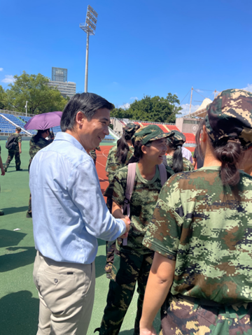 学部党委书记李臣鼓励军训学员们:“军训是锻炼学生吃苦耐劳能力和意志的重要环节,我相信你们都能在这里取得宝贵的经验,为未来的学习和生活积累力量,不断锻炼自己的意志力,从而成为具有领导潜力和社会影响力的青年一代。”