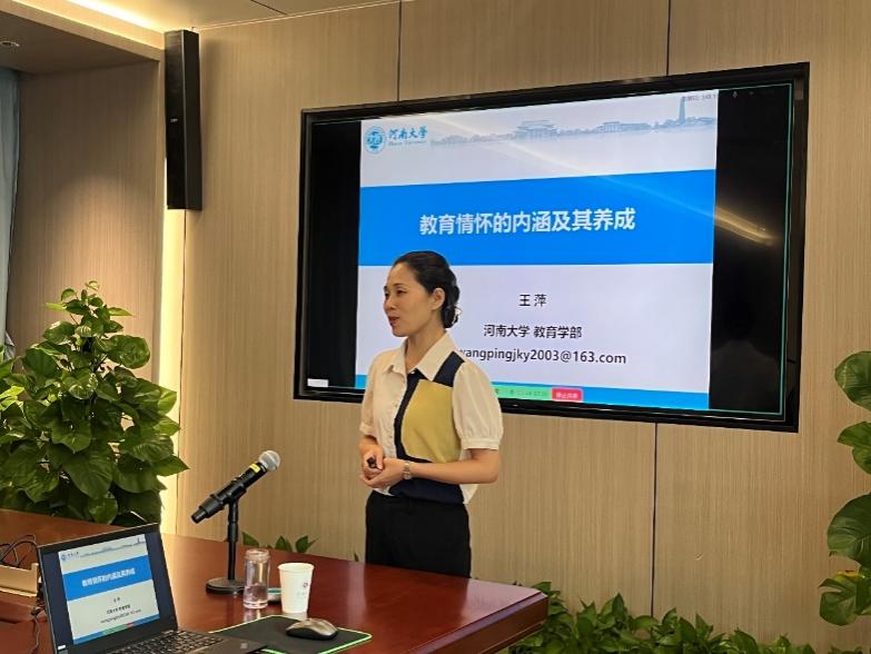 2024年5月16日下午,教育学部知名学者系列讲座活动在汇德楼举行。河南大学教育学部副部长、教育学院院长王萍教授带来题为《教育情怀的内涵及其养成》的精彩讲座。讲座由教育学部特聘教授李树英主持,教育学部相关师生参与讲座。