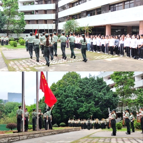 上午7:10,迎着贻荡的春风,升旗仪式正式开始。在整齐划一的步伐中,仪仗队护卫着五星红旗进场。在威武雄壮的国歌声中,鲜艳的五星红旗冉冉升起,全体师生庄严肃立,面向国旗行注目礼,高声齐唱国歌。随后,国旗护卫队升校旗,奏《歌唱祖国》。