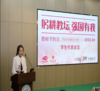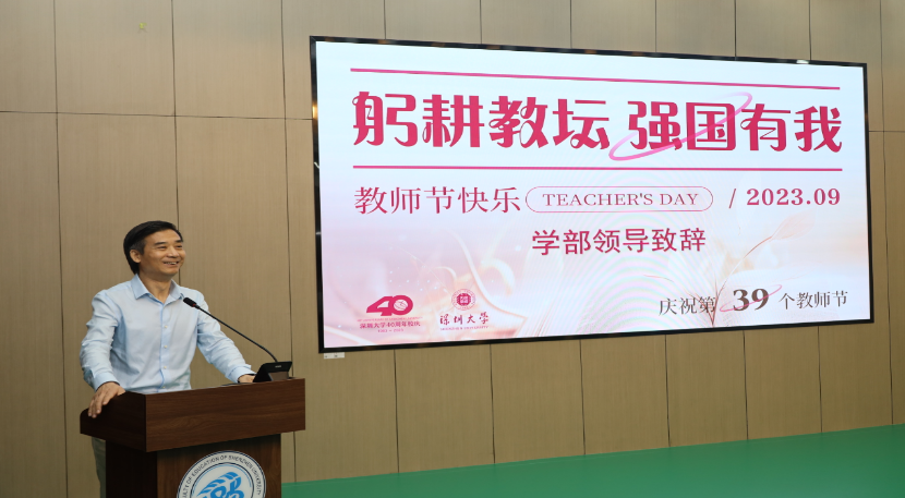 教工代表谢莎以自身职业转变的经历,向与会人员分享了选择教育行业、入职深大的心路历程及对教育岗位进一步的认识。学生代表邓飒、郭玥岑以入读学部的亲身感受,向所有辛勤付出的老师们表达了感恩之情,表示将秉承“三自”校训,在深大尽情追逐人生梦想。