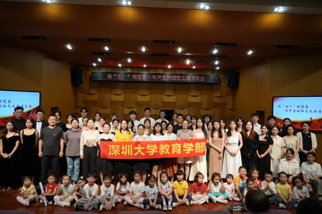 为迎接“七一”建党节,深入开展党纪学习教育,歌颂党艰苦奋斗的光辉历程。6月14日晚,教育学部学前教育系“迎‘七一’ 颂党恩——琴声中的红色之旅”音乐会在深圳大学音乐厅成功举办。本次活动邀请了教育学部机关等党支部的党员老师们,以及深圳大学附属幼儿园和诺德幼儿园的党员老师们和幼儿们。