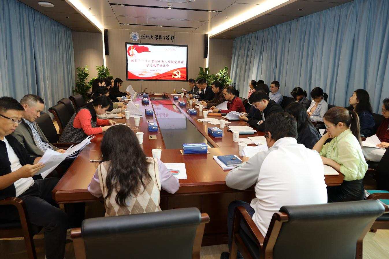 4月7日下午,教育学部在汇德楼A412会议室举办2025年新入职教职工教育暨深入贯彻中央八项规定精神学习座谈会。学部班子、纪委成员、内设部门负责人及新入职教职工参加会议,会议由党委副书记吴长贤主持。