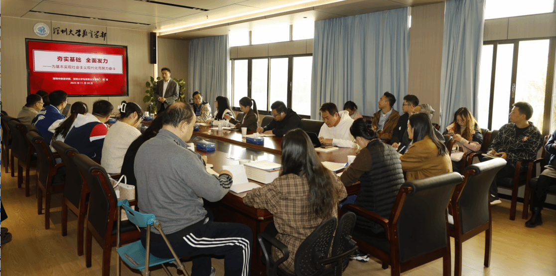 11月28日上午,教育学部在汇德楼A412会议室举办专题培训班,特邀深圳大学马克思主义学院刘志教授深入解读党的二十届四中全会精神。学部党委书记、纪委委员、党支部书记及委员、内设部门负责人、党建组织员、党务秘书等约40人参加培训,会议由党委书记李臣主持。