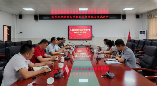 为深入贯彻落实省委省政府关于实施“百县千镇万村高质量发展工程”的决策部署,进一步推动深圳大学教育学部“双百行动”的落地见效,2024年5月17日,教育学部教师发展学院赴海丰开展“双百行动”的专项调研工作,并结合海丰县“2024年全国学前教育宣传月”宣传活动,组建学前教育领域的专家团队送教上门,与海丰县教育局协同完成“深圳大学——海丰县幼儿园园长、骨干教师专业能力提升”的专项培训工作。 2024年5月17日下午,由深圳大学教育学部教师发展学院常务副院长黄娟带队,唐国良副院长及培训项目专干冯莉一行三人,赴海丰县教育局及教师发展中心召开座谈会。海丰县教育局周伟津副局长、教师发展中心主任陈源德主任及海丰县教师发展中心的相关科室主任参加了座谈会。陈主任从海丰县的学校整体布局及师资队伍突出存在的结构性问题等,提出了未来急需的培训项目;海丰县附城中学叶振辉校长和新园小学曾海全校长从两所学校面临的实际困难及短板等方面,提出了自己的帮扶诉求。