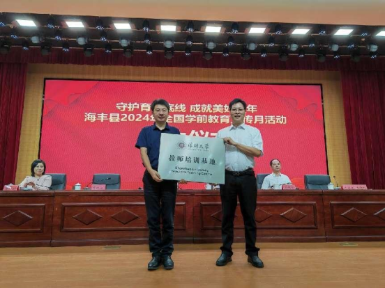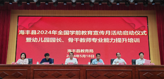 接着,曹主任代表深圳大学教育学部隆重授予海丰县教师发展中心为“深圳大学教师培训基地”牌匾。 接着,几位在主席台就坐的领导领导共同点亮启动器,海丰县教育局局长李建生宣布海丰县2024年全国第13个学前教育宣传月活动及幼儿园园长、骨干教师专业能力提升培训班正式启动。
